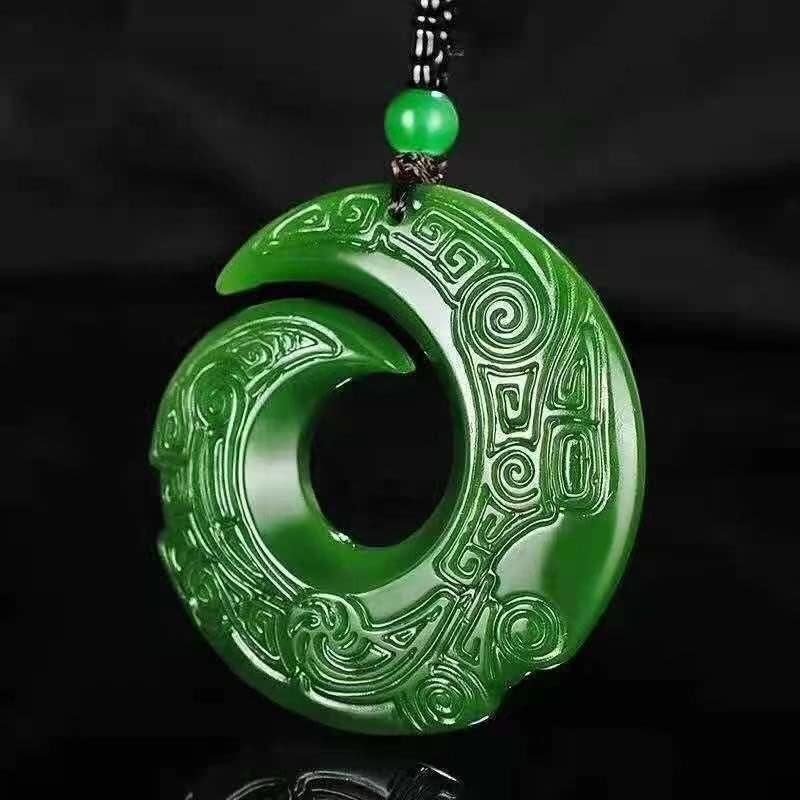 Green Jade Dragon Jade Pendant Fashion Runes Necklace Jewellery Chinese Hand-Carved Relax Healing Women Man Luck Gift