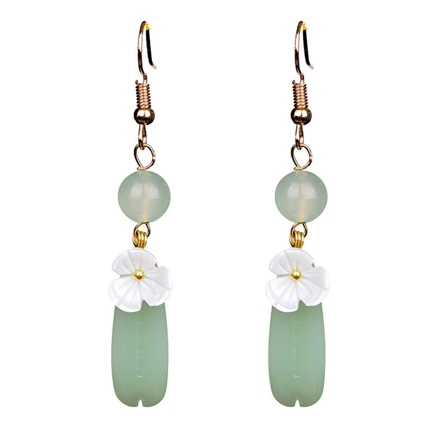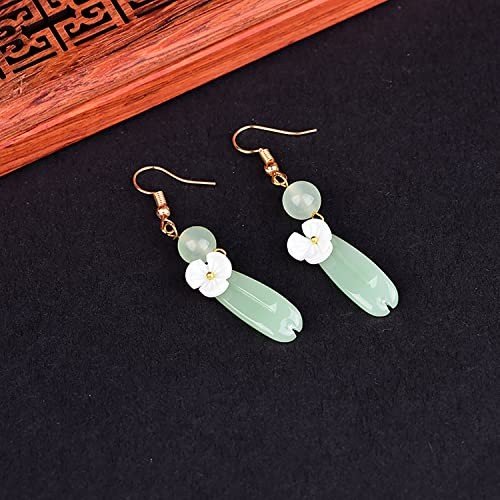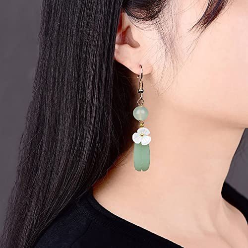 - Material:ladies pendant jade earrings length 3.7in, 18k gold-plated, ecological plating.(Note:Natural stones have unique patterns and colors..Despite our efforts to depict the authentic colors in photos,variations may arise due to screen and lighting disparities.)
